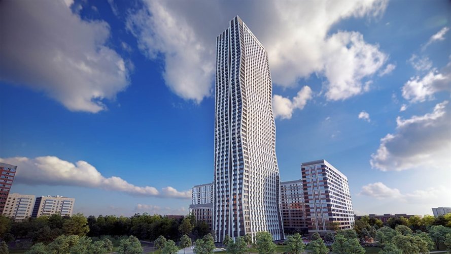 Башня высотой 182,4 метра является доминантой района Свиблово. Это единственное здание во всём районе, которое превышает отметку 150 метров. Фасад дома выполнен в виде мягкой волны, которая приковывает взгляд и подчёркивает ваш уникальный статус.