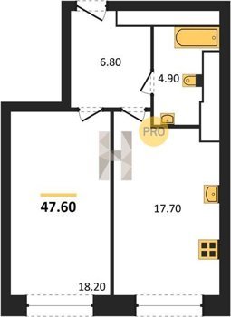 Площадь от 44.8 м2
